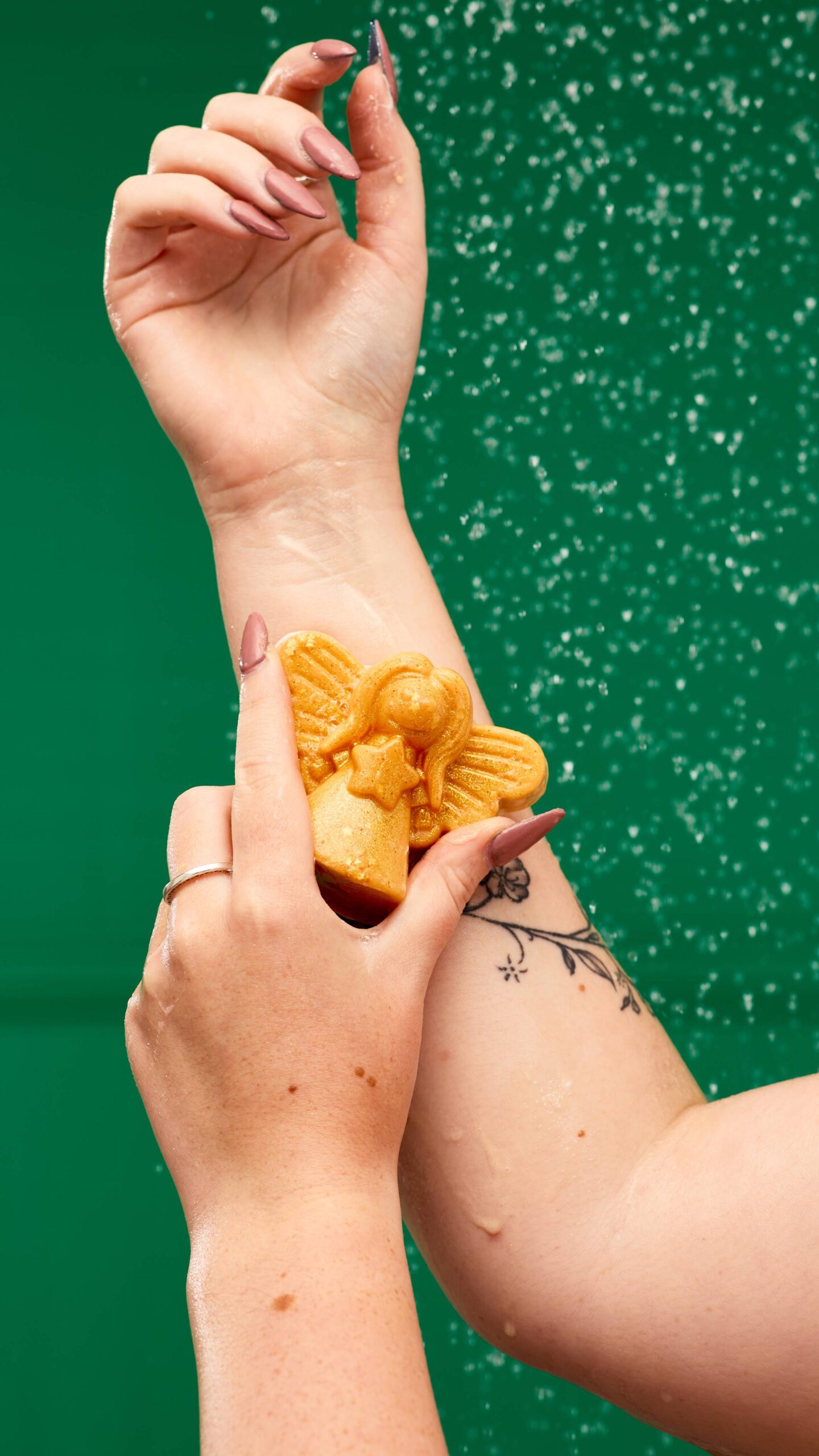 A golden angel graces your soap dish with juicy sweet scents, a touch of sparkle and soothing oat milk. Your wish for soft, scented hands has been granted this Christmas.